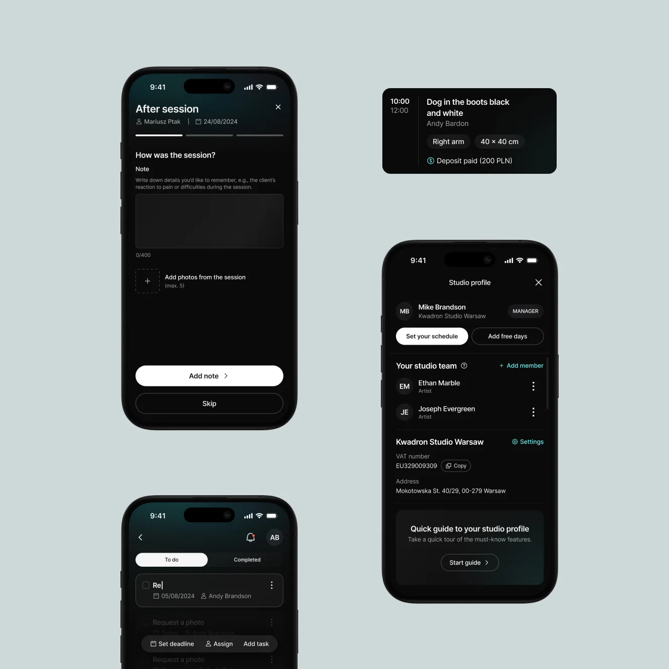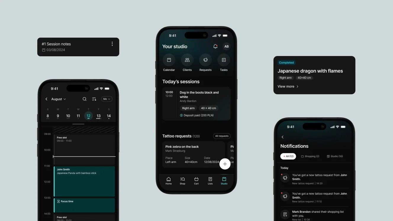 We tested session scheduling, client management, and studio operations to ensure seamless integration into artists' daily workflows. The result? A unified platform that replaced several scattered apps instead of adding another one.